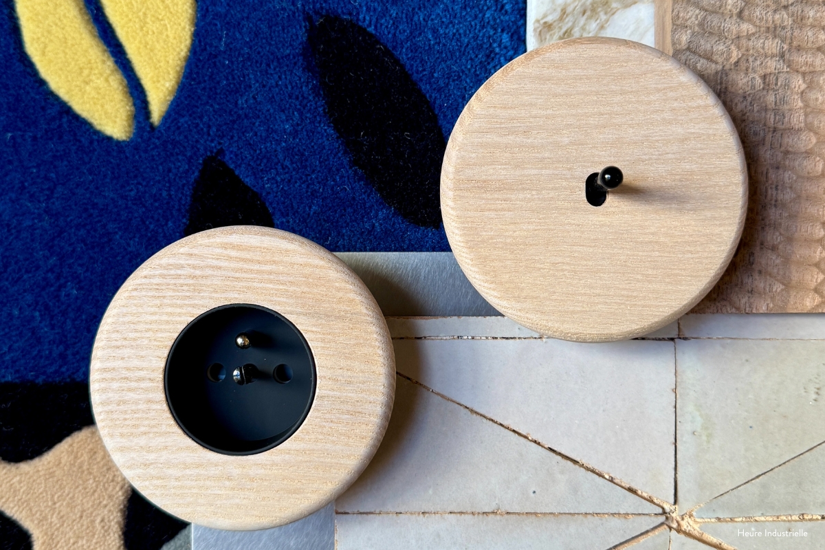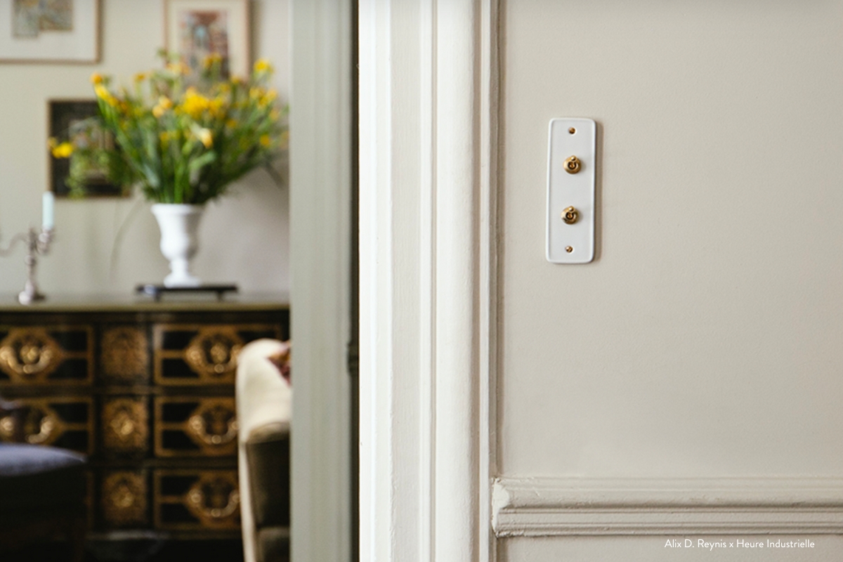 Cette évolution, nous l'explorons aussi, au sein de l'Heure Industrielle, à travers notre premier projet d'édition. Il s'agit de la collection Haussman, imaginée par Valentine Simon en collaboration avec Alix D. Reynis. Ensemble, elles ont conçu des interrupteurs et des prises électriques tout en finesse, qui se déclinent en deux coloris : blanc et noir, plus contemporain.