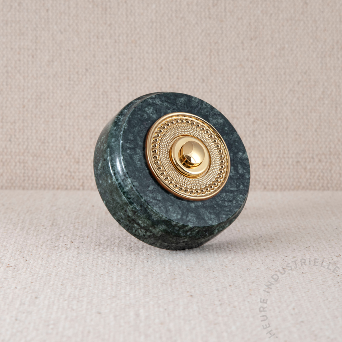 MARBRE VERT ROND 75X20mm BOUTON ET COLLERETTE PERLEE OR