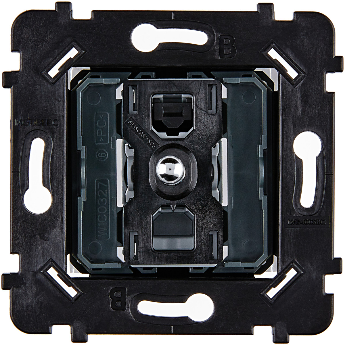 A monter avec une boîte d'encastrement d'une profondeur de 50 mm ; par exemple, la boîte multimatériaux Batibox 1 poste 50 mm - Ref L080121