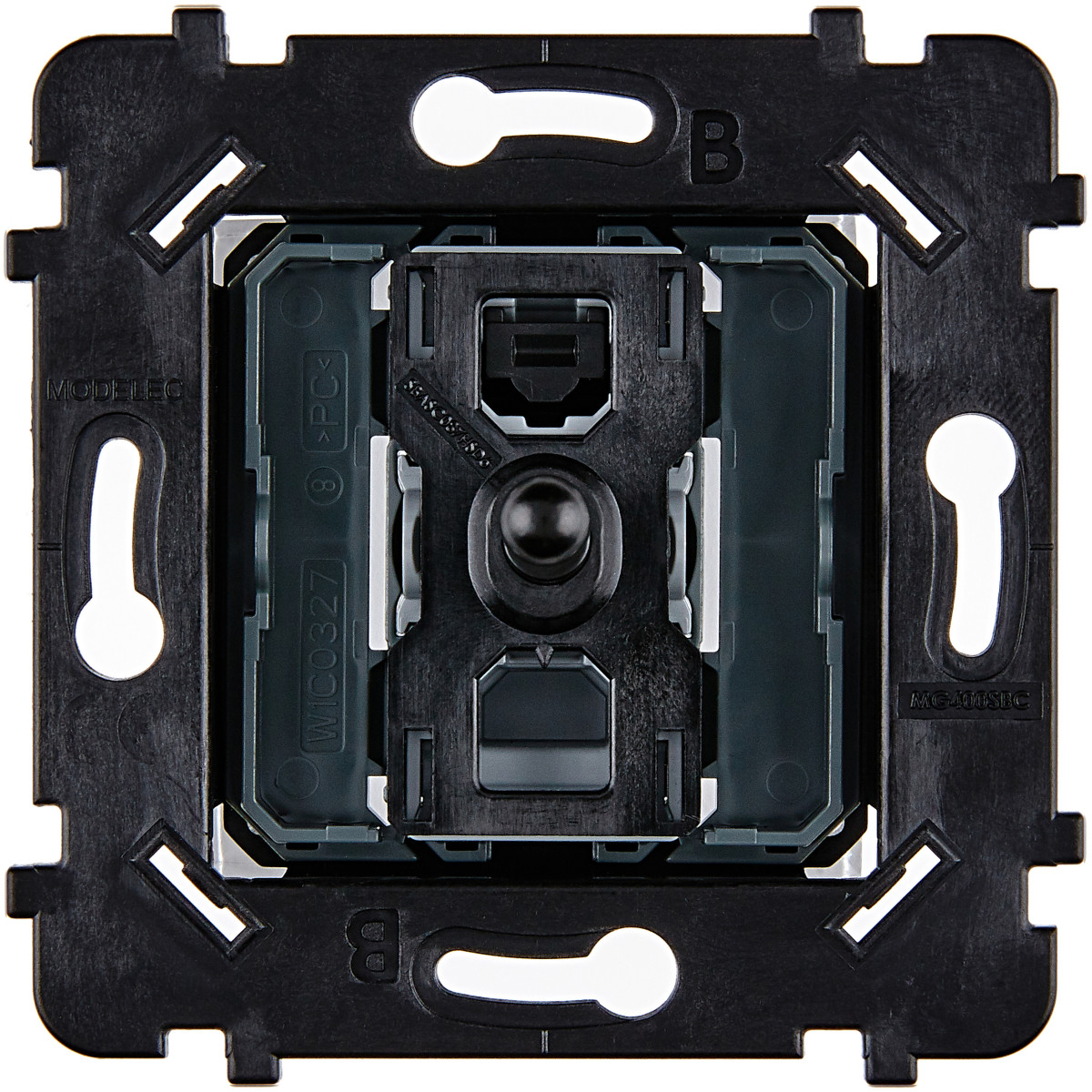 A monter avec une boîte d'encastrement d'une profondeur de 50 mm ; par exemple, la boîte multimatériaux Batibox 1 poste 50 mm - Ref L080121