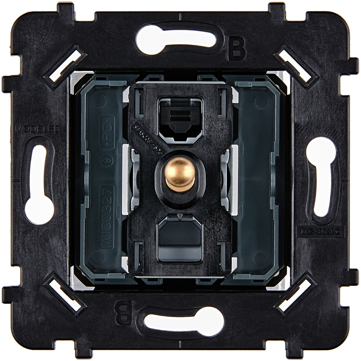 A monter avec une boîte d'encastrement d'une profondeur de 50 mm ; par exemple, la boîte multimatériaux Batibox 1 poste 50 mm - Ref L080121