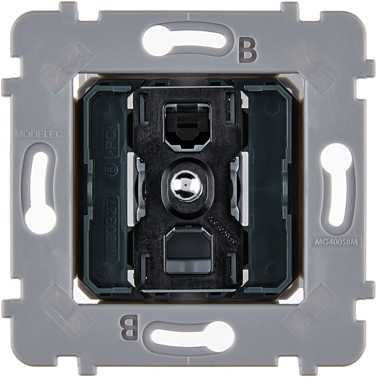 A monter avec une boîte d'encastrement d'une profondeur de 50 mm ; par exemple, la boîte multimatériaux Batibox 1 poste 50 mm - Ref L080121