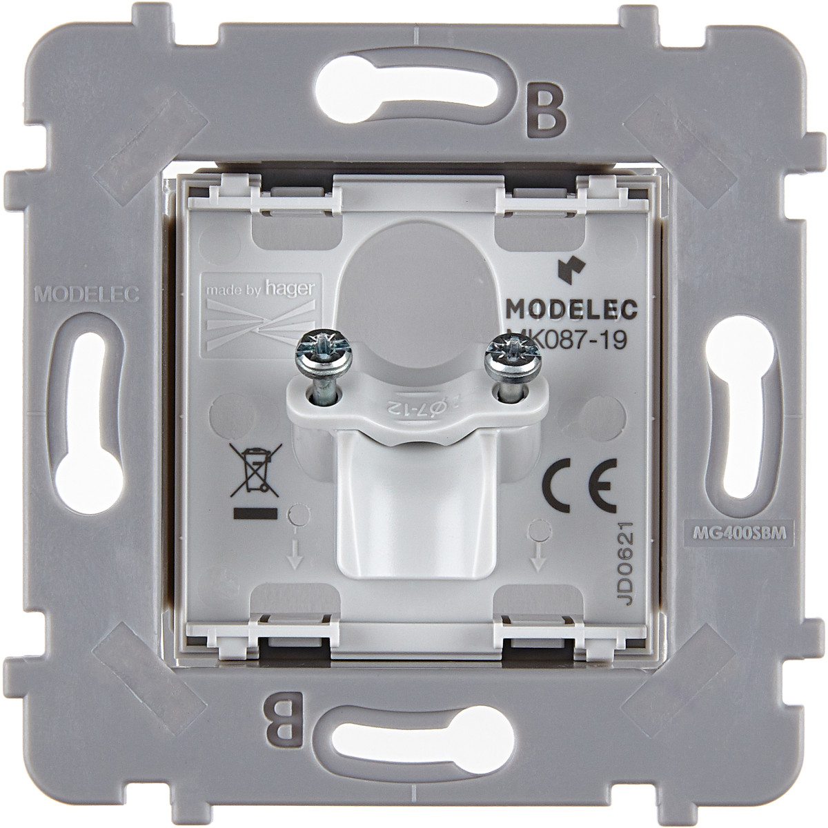 A monter avec une boîte d'encastrement d'une profondeur de 50 mm ; par exemple, la boîte multimatériaux Batibox 1 poste 50 mm - Ref L080121