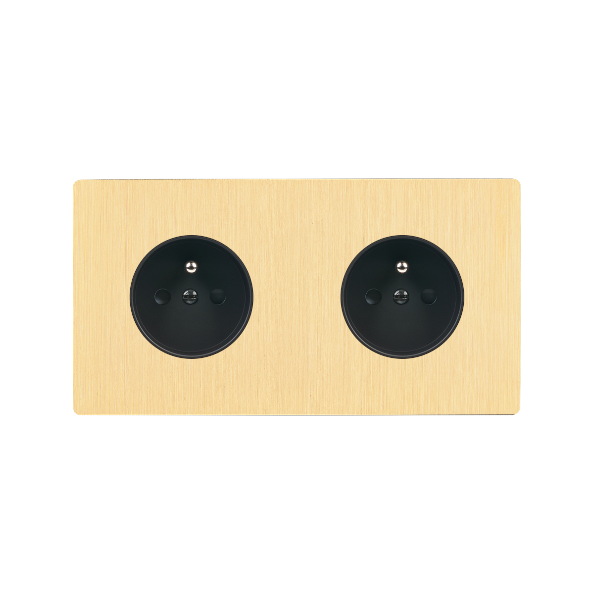 Façade M Laiton Brosse Double Horizontale 2 Prises magnétique