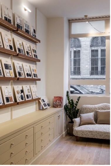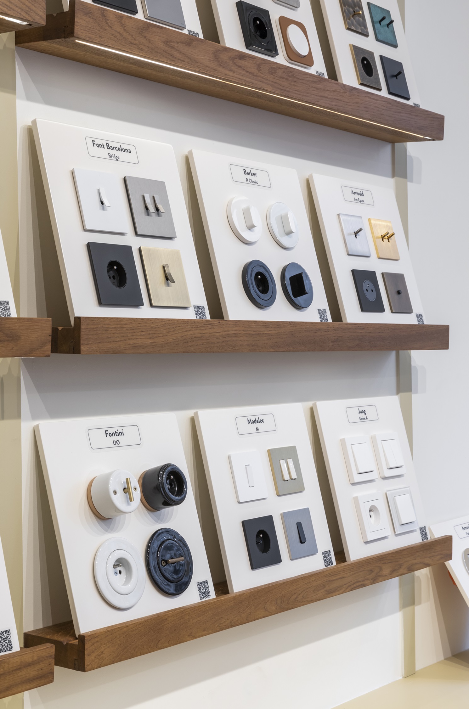 De l’autre côté de la rue, au rez-de-chaussée de l’adresse historique du 16 rue de Madrid, est vendu l’ensemble des produits aux professionnels (architectes, designers, maitres d’œuvre…) et aux particuliers pour qui l’appareillage électrique tient une place de choix dans le décor.
