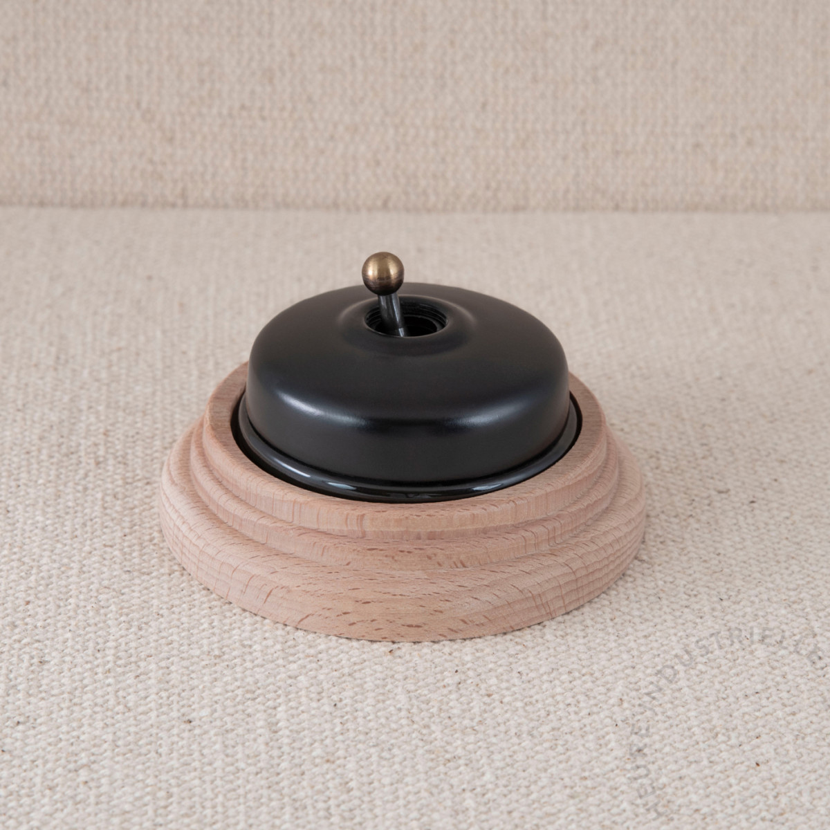Interrupteur Dimbler dôme métal base porcelaine noire socle bois