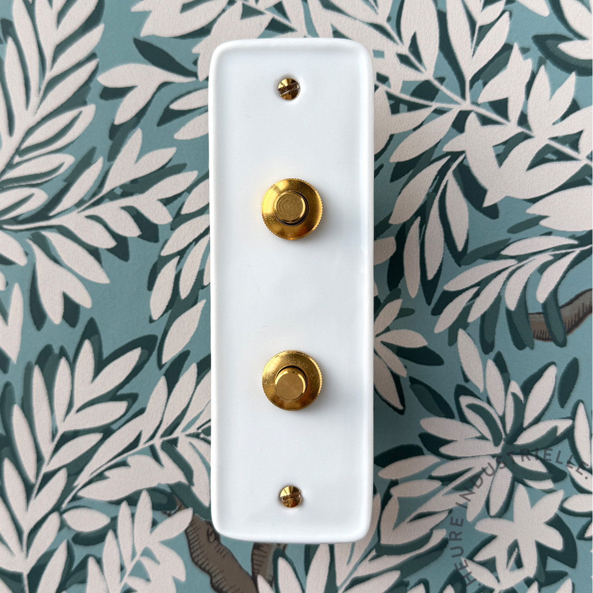 Interrupteur ADR x HI Double Doré sur Plaque Porcelaine Blanche