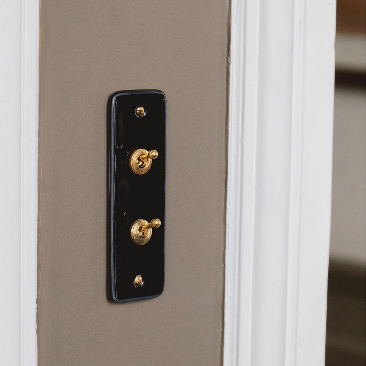 Interrupteur ADR x HI Double Doré sur Plaque Porcelaine Noire