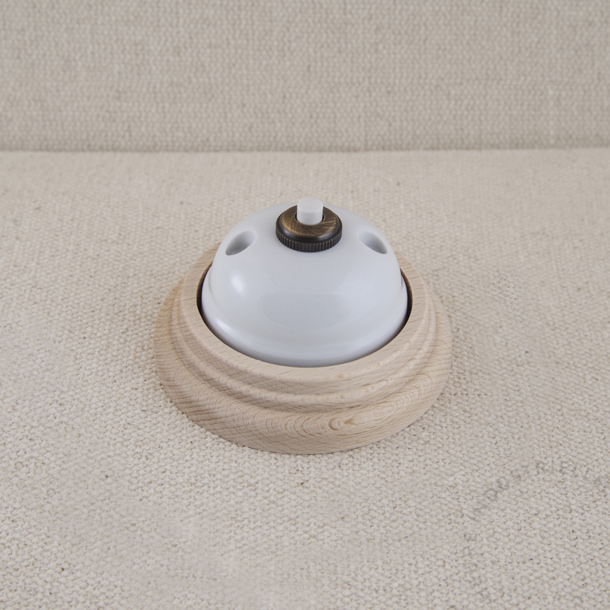 Bouton poussoir arrondi Garby en porcelaine sur socle bois