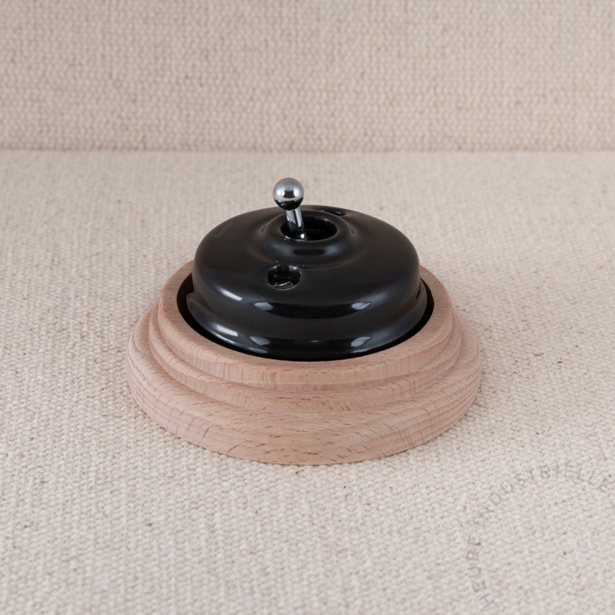 Interrupteur manette Dimbler porcelaine noire socle bois