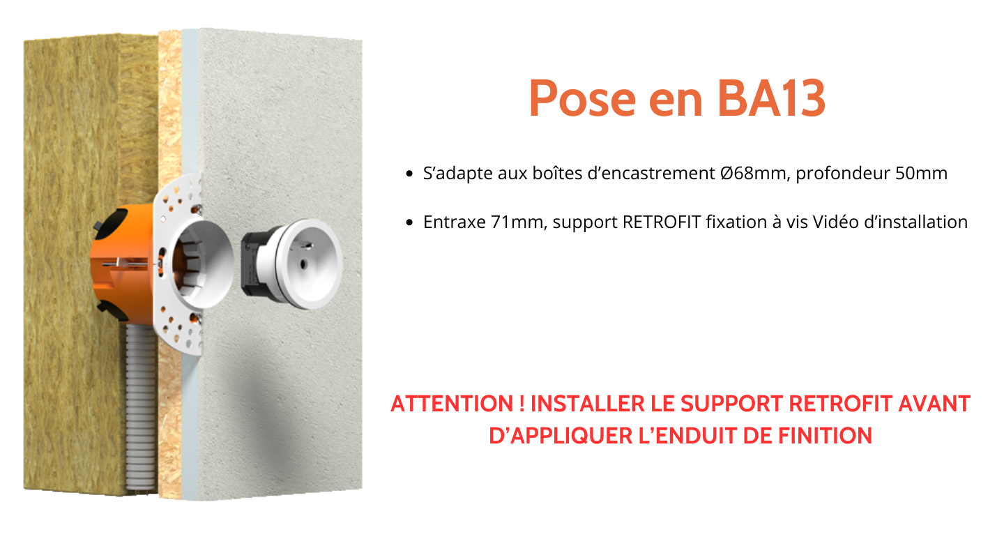 Ils nécessitent un trou de diamètre 48 mm pour le modèle Trim less ou de 52 mm pour le modèle Small trim, permettant ainsi une finition affleurante.
